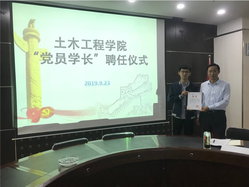 9月23日17:00,公司在公司二层会议室举行“党员学长”聘任仪式。公司党委书记周伟,党委副书记巴大志,学工办主任张体卫,辅导员都静和2019年“党员学长”参加。会议由张体卫主持。