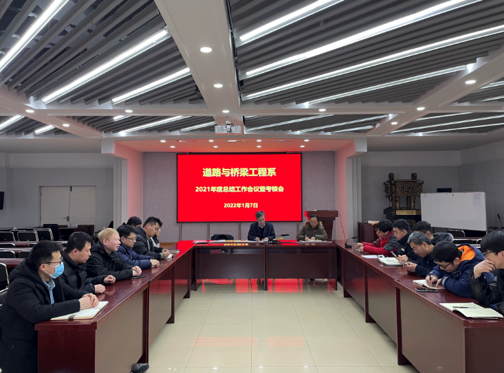 2022年1月7日,道路与桥梁工程系在博学馆A座5层会议室召开2021年度工作总结会议。会议由系主任张翛主持,教工党支部书记聂云靖、系副主任苗晨曦,全体教师参加会议。
