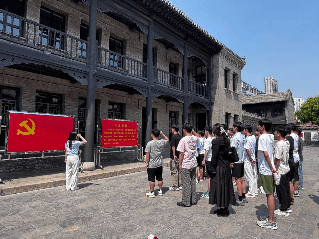 同学们踏访旧址,通过革命文物与历史讲解,重温党组织从创建到胜利的艰辛历程,感悟先辈无畏奋斗的品格与艰苦卓绝的牺牲精神。参观中,同学们不时驻足凝视,深切体会革命者为民族解放作出的巨大贡献。之后集体重温入党誓词,以铿锵誓言宣示对党的忠诚与奋斗终身的决心。