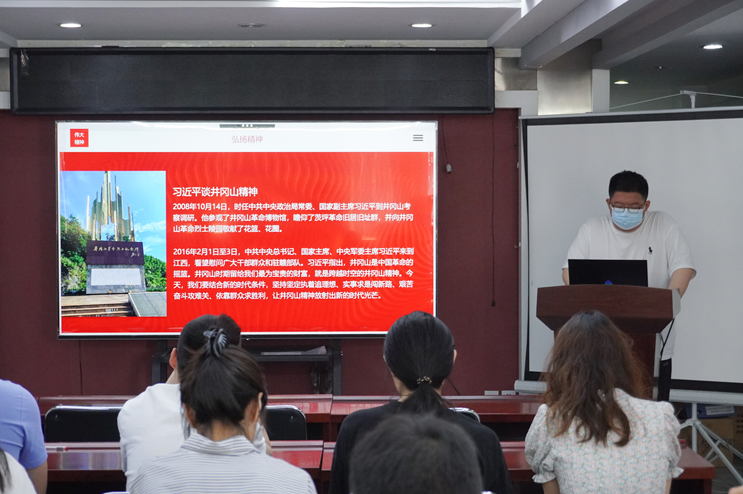 首先,党员娄劲涛以“井冈山精神”为主要内容,带领支部党员学习了井冈山精神。井冈山是中国革命根据地的摇篮,井冈山时期留给我们最宝贵的财富就是跨越时空的井冈山精神。我们要结合新的时代条件,坚持坚定执着追理想、实事求是闯新路、艰苦奋斗攻难关、依靠群众求胜利,让井冈山精神放射新的时代光芒。
