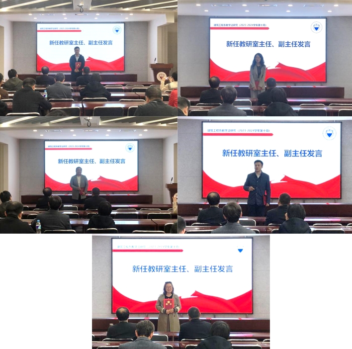 上届教研室主任代表原施工教研室主任张玉就她在任期间的工作感想进行发言。张玉回顾了她在当教研室主任期间的经历,就其工作经验进行了分享,希望新任的教研室主任、副主任们取其精华、去其糟粕,更好地完成教研室工作。