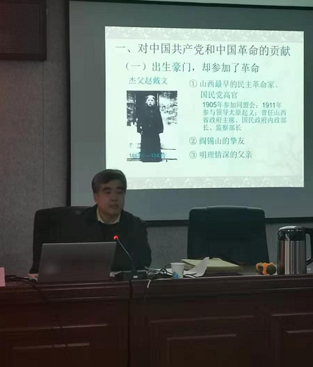 秦志敏老师以太原工公司第一任董事长赵宗复的卓越生平事迹为切入点,讲述了在危机四伏的环境下,赵宗复同志依旧坚持传送阎方军事、政治、经济等各项情报,勇敢而机智地闯过道道难关,为完成党交付的任务竭尽所能,为中国人民的解放事业做出了突出的贡献!他指出赵宗复同志为共产主义事业奋斗终身的高贵品质,勤勤恳恳、谦虚谨慎、艰苦朴素、平易近人的良好作风,严于律己、宽以待人、团结同志、奖掖后进的优秀品德是公司宝贵的精神财富。