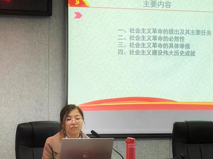 秦燕老师以“社会主义”为关键词,围绕社会主义革命的提出及其主要任务、社会主义革命的必然性、社会主义革命具体举措、社会主义建设伟大成就这四个板块,向师生们讲述了党的伟大历史成就。