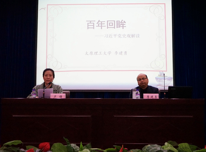 会上,李建勇教授以《百年回眸——习近平党史观解读》为题,从两个方面对习近平党史观进行了深刻解读。一是坚持以习近平的党史观为指导学好党史,讲解了什么是习近平的党史观、习近平党史观的特点及性质; 二是学党史悟思想,开创太理发展的新局面,主要阐述了习近平总书记悟出的治国理政的智慧,包括坚持以人民为中心、坚持实事求是的思想方法和坚持革命理想高于天,最后讲述了习近平党史观对新时代的我们的启迪——必须牢固树立精神动力的意识。