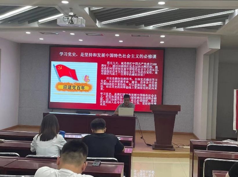 会议伊始,张进标同志向大家介绍了党史人物李克农—党中央的警卫员,李克农同志多次在党的危急关头,传递重要情报挽救党中央于水火之中,通过讲述李克农同志的生平以及几个典型故事来让大家更加深刻得了解其为共产主义事业所做的贡献和不惧生死的精神;学习党史,是坚持和发展中国特色社会主义的必修课,王鹏飞同志向大家强调了学习党史的重要性,并且结合自身的成长经历给大家讲述了为什么要学党史,当代青年应拒绝“躺平”,争做一代有理想、有奋斗、有担当的青年人。