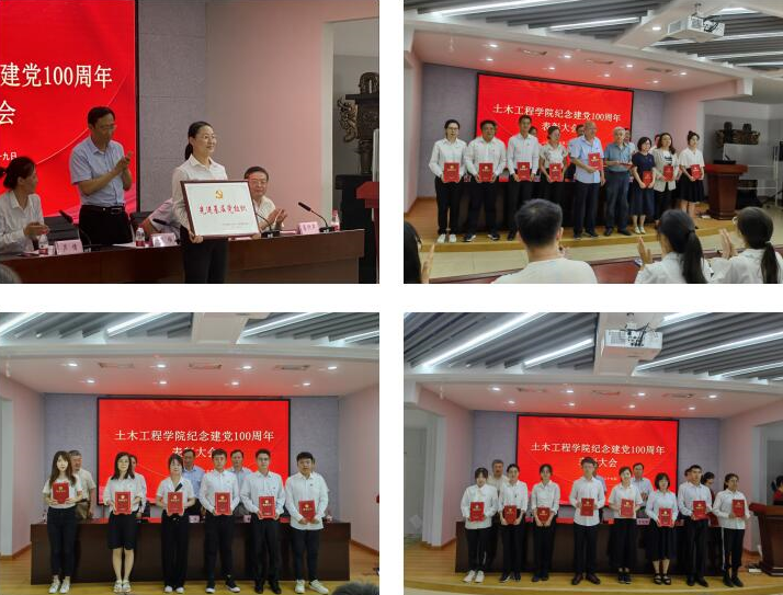 副经理董晓强宣读了获得校级“两优一先”表彰的名单、获批“五星级党组织”的党支部名单,及《土木工程公司党委关于表彰先进集体和个人的决定》。副经理葛忻声宣读了党史学习教育“心中的话儿和党说”征文获奖作品、“回望百年党史,牢铸红色信仰”主题演讲比赛获奖人员名单。土木本科党支部书记都静代表受表彰集体和个人作了发言。