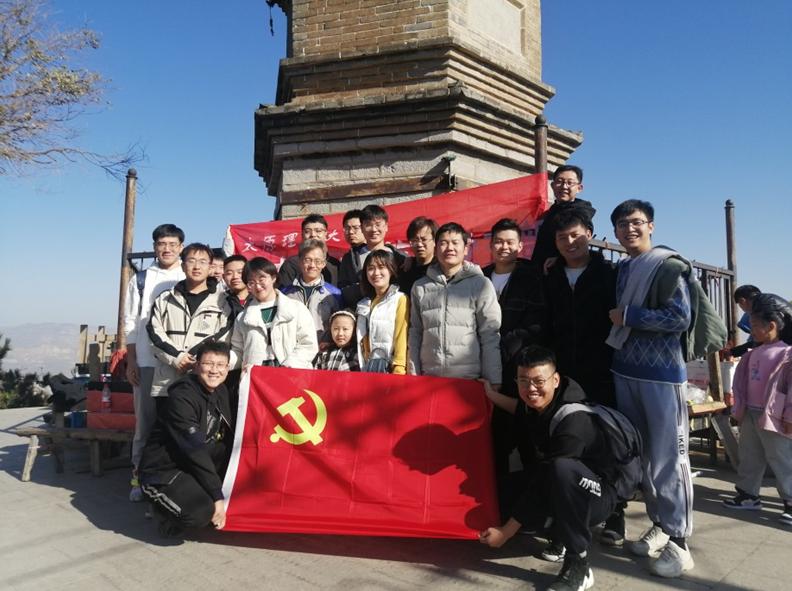 为促进新老党员交流学习,增强支部内党员凝聚力。2021年11月14日上午,土木第二研究生党支部全体党员赴太原崛围山开展了登山活动。