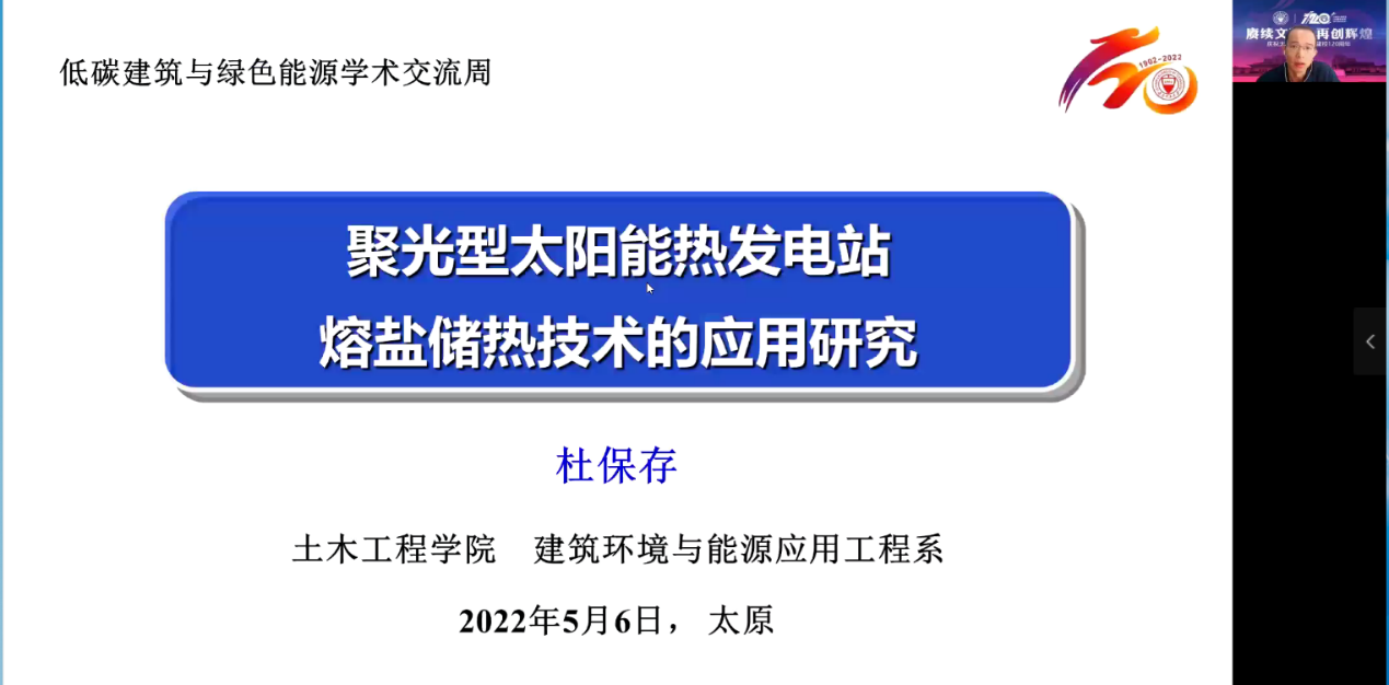 李旻教授的报告题目为《地埋管换热器的跨尺度传热计算》,报告分析了目前地埋管换热器的研究存在的问题,分享了在地埋管换热器短期和中长期计算模型及其应用。刘岳栋高工的报告题目是《新源智慧建设运行总部A座近零能耗暖通空调设计》,报告介绍了近零能耗建筑设计方案、主动式技术、被动式技术及可再生能源技术的应用。杜保存博士的报告题目是《聚光型太阳能热发电站熔盐储热技术的应用研究》,报告展示了聚光型太阳能热发电站系统原理与主要设备、国内外应用现状与前景及熔盐储热研究。