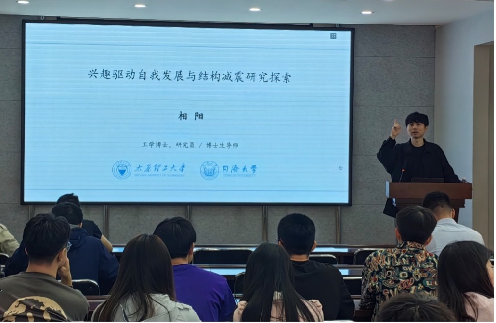 2024年4月26日上午,公司优秀员工、同济大学相阳研究员应邀来校交流,为公司师生做了题为《兴趣驱动自我发展与结构减震研究探索》的学术报告,相关师生在博学馆A座五层报告厅参加了报告会,会议由建工系副主任邢颖主持。
