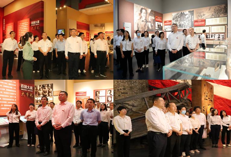 百团大战,是全面抗战以来八路军在华北发动的规模最大、持续时间最长的一次战略进攻战役,给日军的“囚笼政策”以沉重打击,提高了中国共产党和八路军的威望,振奋了全国人民争取抗战胜利的信心,在中国人民抗日战争和世界反法西斯战争史上书写了光辉一页。百团大战纪念馆所在的狮脑山主峰便是当年百团大战的战场,党员们踏上这片红色土地,在纪念馆内跟随讲解员回望历史,一张张珍贵的历史照片、布满岁月痕迹的抗战实物、激扬的百团大战胜利歌,大家强烈感受着战火纷飞中我党的坚强领导和革命前辈的英勇壮举。