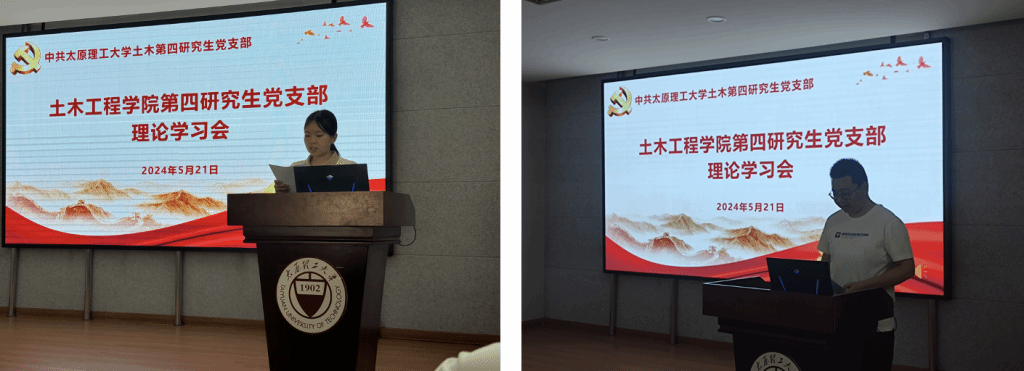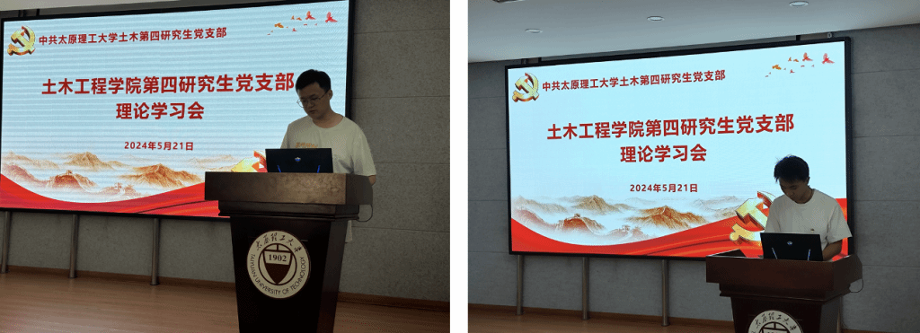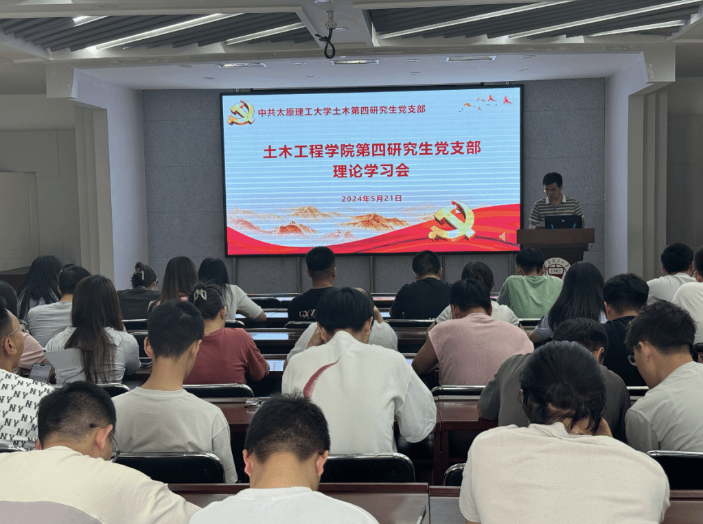 2024年5月21日下午,土木第四研究生党支部在公司五层会议室召开党纪学习教育专题学习会,深入学习宣传贯彻习近平总书记五四青年节对全国广大青年寄语精神,并认真学习贯彻习近平总书记关于党纪学习教育的重要讲话精神和重要指示精神,组织学习新修订的《中国共产党纪律处分条例》。会议由宣传委员王浩宇主持,支部书记邱斌、支部组织委员李赟及土木第四研究生党支部全体党员参加。